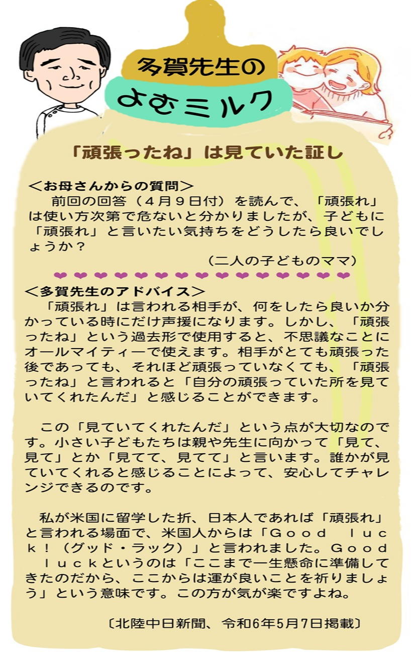 多賀クリニック(白山市)「たがのわ」多賀先生の子育てアドバイス