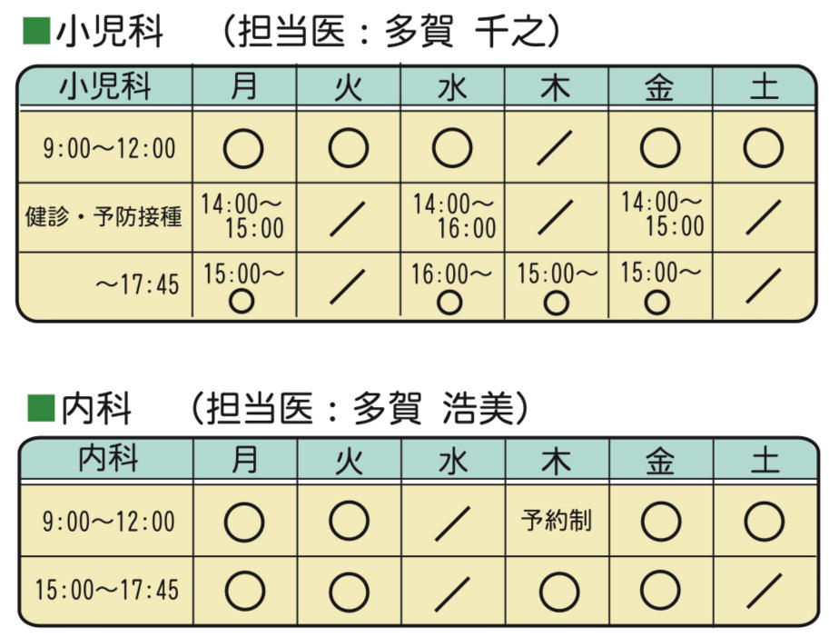多賀クリニック(白山市)診療時間